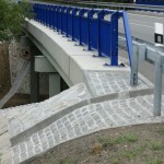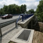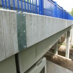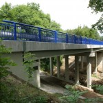 Most o třech polích z polských prefa nosníků. Kompletní oprava nosné konstrukce: kotvená železobetonová deska, římsy, zábradlí, dilatace a sanace podhledu a spodní stavby.