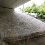 Starý kamenný obloukový most o čtyřech klenbách (3,2 až 7,3 m) přes řeku Stěnavu a mlýnský náhon. Po odstranění torkretu se ukázalo, že most je ve velmi špatném stavu. Byly ponechány jen klenbové oblouky na částečně narušených pilířích. Oblouky byly zpevněny dilatovanými železobetonovými „přebetonávkami“. Z nich byly vytaženy parapetní zdi. Vzniklý prostor byl odvodněn, zaizolován a vyplněn drenážním betonem. Plochy z betonu byly obloženy původním kotveným kamenem, parapet z větší části z původních kamenů.