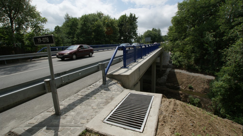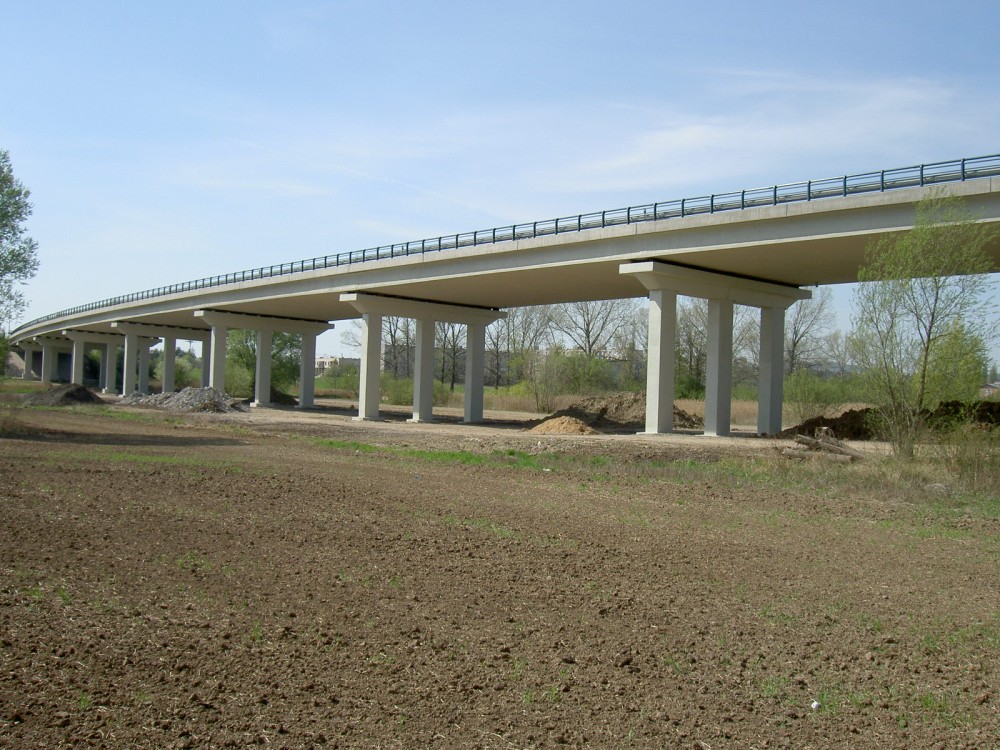 Objednatel: ŘSD ČR, správa Hradec Králové Projektant: Optima s.r.o., Vysoké Mýto Realizace: 06/2005 – 11/2006 Cena prací: 64,7 mil Kč Mosty o délce 279,4 a 115,6 m jsou z prefabrikovaných nosníků I 30 a I 27 o devíti a čtyřech polích. Oprava realizována po polovinách. Odstranění starého vystrojení na nosníky, nové dilatační závěry, nová železobetonová deska a kompletní vystrojení se zábradlím, zábradelním svodidlem a zábradelním svodidlem se svislou výplní. Na mostě doplněno odvodnění izolace a vozovky. Podhled nosné konstrukce a celá spodní stavba sanována a sjednocena barevným ochranným nátěrem.