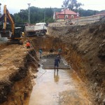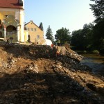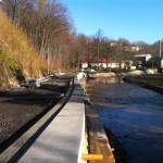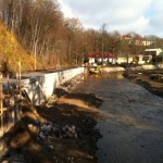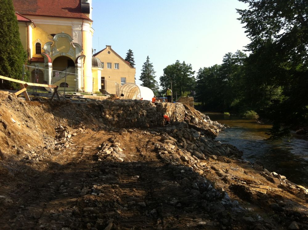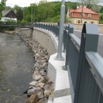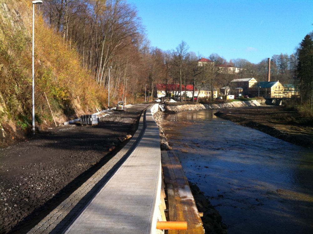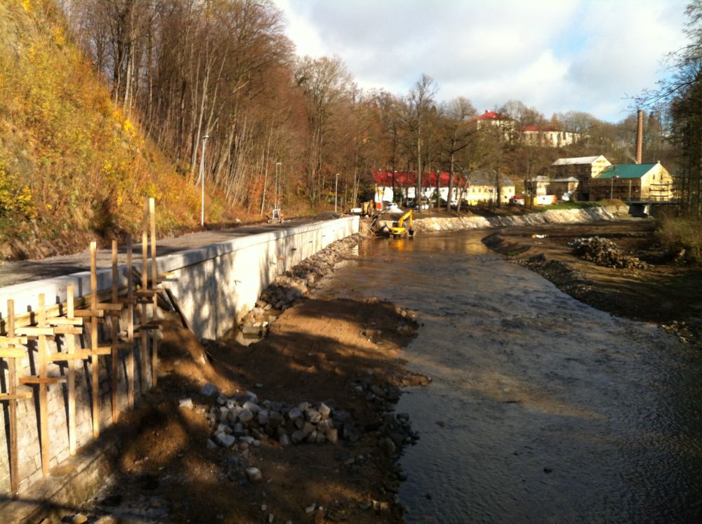 Jednalo se o výstavbu nové monolitické betonové zdi. Opěrná zeď je opatřena kamenným obkladem a pata opěrné zdi je chráněna kamenným záhozem. Na monolitické betonové římse je osazeno kotvené zábradlí. Plocha zdi 907 m2 a délka zdi 165 m.