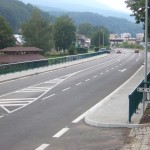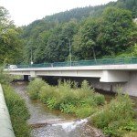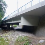 Most o třech polích z polských prefa nosníků. Kompletní oprava nosné konstrukce: kotvená železobetonová deska, římsy, zábradlí, dilatace a sanace podhledu a spodní stavby.